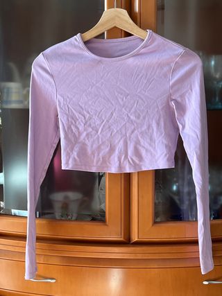 Crop top de manga larga en color morado. - Diseño moderno y juvenil. - Tejido suave y cómodo. Medidas - ancho: 36cm - largo: 35 Material: - algodón