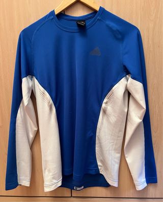 Camiseta deportiva de manga larga, con tecnología climacool. Como nueva. Muy pocos usos. Marca: Adidas Talla L Tanto para practicar deporte, como para árbitros ya que lleva bolsillos. Hay más colores en mi perfil.