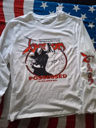 Camiseta de manga larga del grupo de heavy metal Venom, con el diseño Possessed. - Estampado frontal con la banda y la frase We are possessed by all that is evil The death of you God we demand. - Detalle de POSSESSED BY EVIL SINCE 1979 en la parte inferior. - Logo de Venom en la manga derecha. - Cuello redondo.