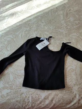 Camiseta de manga larga con detalles bordados en los hombros. - Diseño con hombros abullonados. - Bordado decorativo en los hombros. - Cuello redondo. Está sin estrenar costó 22,90€ pero he visto que le faltan algunos brillos en el hombro izquierdo de ahí su precio. Se puede apreciar en la foto n.9 No hago envíos.