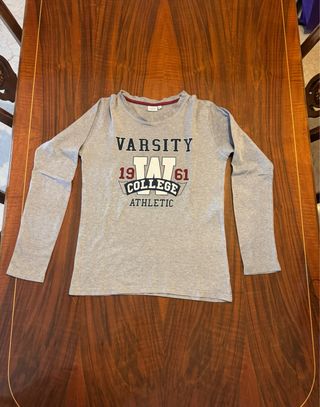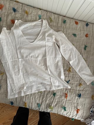 Vendo esta camiseta porque se me quedó pequeña y no llegué a usarla. Está completamente nueva, sin estrenar y con su etiqueta original, así que está perfecta. Lo mejor de la prenda: Es un básico blanco de los que siempre vienen bien en el armario. Tiene un diseño sencillo pero muy cuidado, con un pequeño detalle bordado en el pecho que le da un toque especial sin dejar de ser una prenda fácil de combinar. Tejido y diseño: Es de manga larga y cuello redondo, con un corte clásico muy cómodo para el día a día. El tejido es suave y ligero, perfecto para entretiempo o para llevar bajo chaquetas, sudaderas o abrigos. ¿Cómo combinarla?: Qu