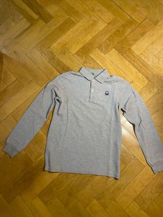 Polo de manga larga de Benetton en color gris. - Cuello tipo polo. - Logo de la marca bordado en el pecho. - Cierre de dos botones.