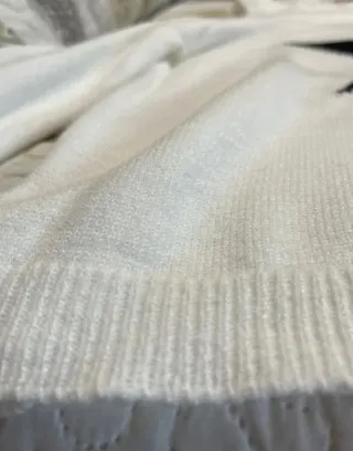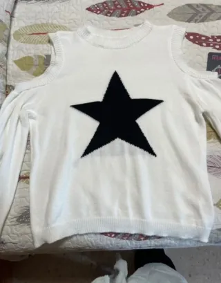 Jersey de punto blanco con un llamativo diseño de estrella negra en el centro. Presenta un corte moderno con hombros descubiertos. - Diseño de estrella grande en contraste. - Mangas largas. - Cuello redondo.