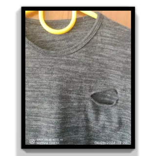 Camiseta de manga larga para chico. Diseño jaspeado en tonos negros y grises. Pequeño detalle en el bolsillo del pecho. Camiseta básica Talla S En buen estado