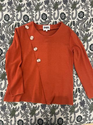 Camisa de manga larga naranja con cuello camisero y cierre de botones. - Diseño liso. - Puños abotonados. Pese a que talla L, queda bastante ceñida, se acercaría quizá más a una M. En perfecto estado. Medidas: - de hombro a abajo: 51cm aprox - de axila a axila: unos 44cm aprox