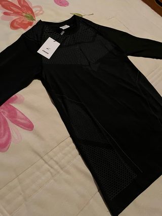 Camiseta de manga larga con un diseño moderno y detalles texturizados. - Tejido técnico transpirable. - Paneles con estampado geométrico. - Cuello redondo.