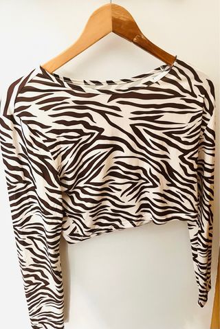 Camiseta de manga larga con un llamativo estampado de cebra. - Diseño ajustado. - Tonos beige y marrón.