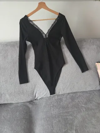 Body elegante de manga larga con detalles de encaje. - Escote en V con borde de encaje. - Tejido acanalado. - Manga larga.