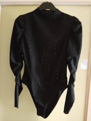Body elegante de manga larga con detalles brillantes. Perfecto para ocasiones especiales.Otro de palabra de honor,otro de manga larga negro transparente y el otro con un color rosa pastel y relleno en los pechos..precio x unidad - Diseño con cuello alto. - Mangas abullonadas. - Tejido con pequeños puntos brillantes.