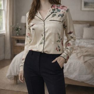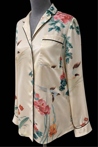 ✨ Camisa Zara XS – Estampado floral y aves ✨ Camisa de Zara, talla XS, confeccionada en tejido satinado de tacto suave. Color crema con estampado floral y de aves. ✔️ Detalle de vivo negro en cuello, bolsillo y puños ✔️ Bolsillo delantero ✔️ Cierre con botones ✔️ Manga larga ✔️ Corte recto Ideal para combinar con vaqueros o pantalón negro. Estilo pijamero / oriental. 📌 Estado: muy bueno, sin manchas ni desperfectos. 📏 Talla: XS