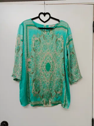 Camiseta turquesa con un bonito estampado. - Diseño paisley. - Manga larga. - Tejido ligero.