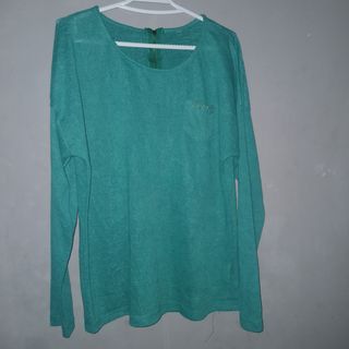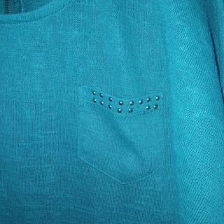 Preciosa camiseta de manga larga para mujer. Es de color verde azulado y tiene un bolsillo con detalles brillantes. - Su tejido es suave y agradable al tacto. - Perfecta para cualquier ocasión.