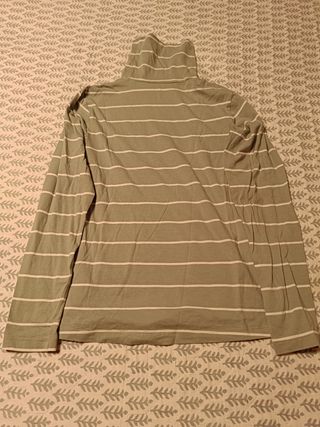 Camiseta de manga larga con un diseño de rayas horizontales. Perfecto estado. - Diseño de rayas blancas sobre fondo gris oscuro. - Cuello redondo. - Manga larga.