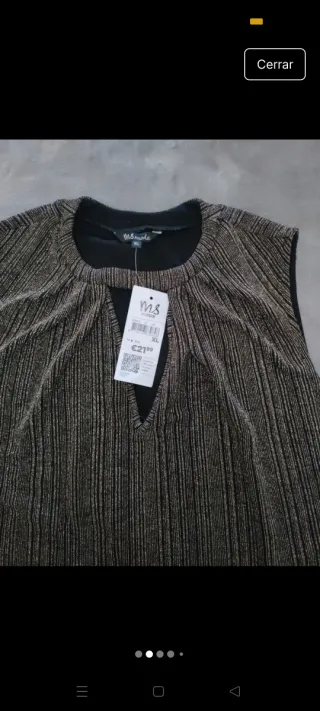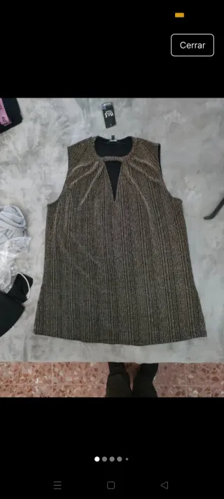 Top largo con un diseño brillante y elegante, perfecto para ocasiones especiales. - Tejido con acabado metalizado. - Escote en pico. - Diseño sin mangas.