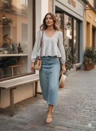 Camisa vaquera larga para niña, con un diseño moderno y detalles únicos. - Cuello camisero. - Cierre de botones. - Volantes decorativos en la parte frontal. - Mangas largas. - Adornos bordados en la zona del pecho.
