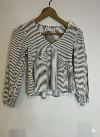 Blusa de Lefties con un diseño de rayas verticales y cuello en V. - Manga larga abullonada. - Corte peplum. - Tejido ligero.