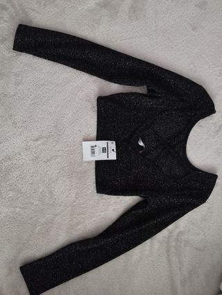 Top negro de manga larga con un poco de brilli-brilli. Espalda con tiras cruzadas. Nuevo a estrenar! Marca tiffosi. Talla XXS.
