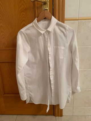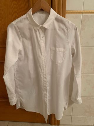 Preciosa blusa blanca de manga larga. Es ligera y cómoda, perfecta para cualquier ocasión. Recoger mangas con tira y boton. - Cierre de botones en el centro. - Corte recto. - Tejido suave.