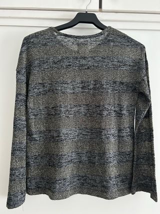 Camisa de manga larga con un diseño de canalé y detalles brillantes. - Cuello en V. - Cierre de botones. - Tejido semitransparente.perfecto estado