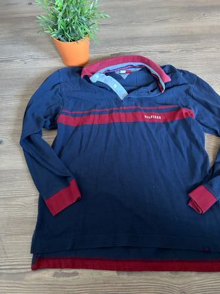 👚Polo Manga Larga Tommy Hilfiger ¡💎 Elegancia Vintage 💎! CARACTERÍSTICAS ✔️ Polo manga larga y tejido grueso. ✔️ Hilfiger bordado en un lateral del pecho, le aporta elegancia. ✔️ Cuello interior con tela vaquera. ✔️ Azul marino y burdeos. ✔️ En perfecto estado con botón de repuesto. ✔️ PVP actual de un polo de esas características 120€ aprox. ✔️ Talla M, talla grande. 💎 Condición 9/10 ¿POR QUÉ COMPRAR EN VINTZON? 🌍 Ayudas a salvar el planeta. 👦🏻 Ayudas con la terapia de un niño con enfermedad mental. 👑 Piezas únicas. ♻️ La mayoría de prendas son usadas/preloved, es normal encontrar signos de uso.