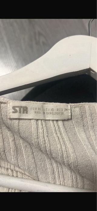 Camiseta de manga larga con tejido canalé y detalle de botones en el lateral. - Diseño de manga larga. - Tejido acanalado. - Botones decorativos en el bajo. - Pequeña mancha en la parte delantera (ver en la última foto)