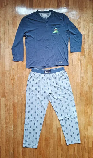 Conjunto de pijama de dos piezas con estampado de los Muppets. - Camiseta de manga larga con cuello Henley y bolsillo en el pecho. - Pantalón largo con cintura elástica y estampado repetido. - Diseño divertido y cómodo para el descanso. No da mucha talla
