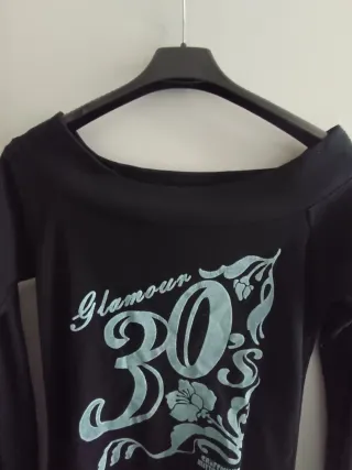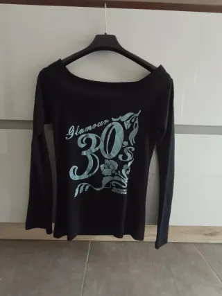 Camiseta de manga larga con un diseño llamativo. - Cuello barco. - Estampado frontal con Glamour 30s y detalles florales. - Manga larga.