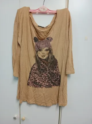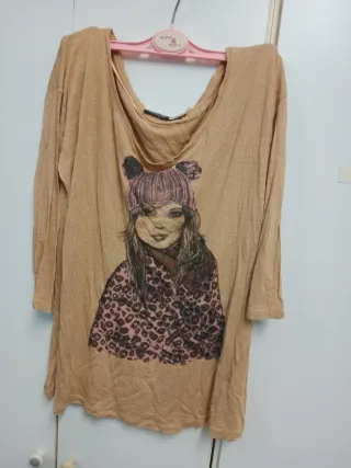 Precioso top manga larga con mangas largas marrones y un dibujo