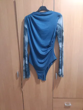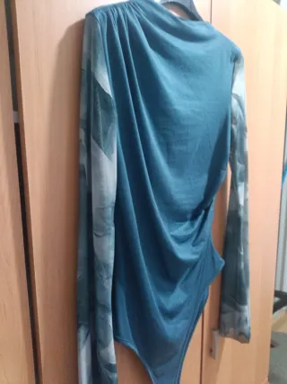 Top con un diseño llamativo y moderno, perfecto para destacar. Talla Xs elástico valdría para una S - Tejido con acabado metalizado. - Diseño de un solo hombro. - Manga larga.Esta sin utilizar