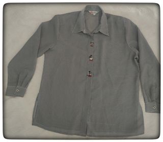 Blusa de manga larga con un diseño de cuadritos - Cuello camisero. - Cierre de botones que no se ven. - Detalle de botones con figuras.