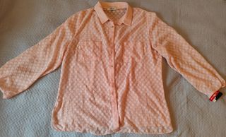 Camisa de manga larga con un bonito estampado de círculos en relieve en tono rosa. Con cierre de botones y bolsillos en el pecho. Talla 50 de Leyca (Kira). Nuevo, conserva etiqueta.
