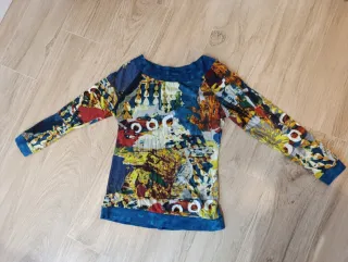 Camiseta de manga larga con un diseño vibrante y artístico. - Estampado multicolor llamativo. - Cuello redondo. - Mangas largas.