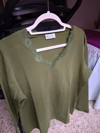 Camiseta de manga larga con un bonito detalle de encaje en el cuello. - Cuello en V con puntilla. - Manga larga. - Tejido suave y cómodo.