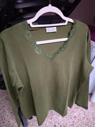 Camiseta lencera, de manga larga con un diseño elegante y detalles de encaje. - Cuello redondo con borde de encaje. - Bajo con doble capa de encaje. - Tejido suave y cómodo.
