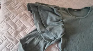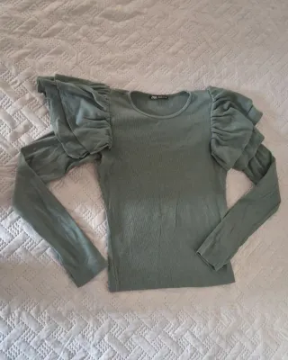 Niki de manga larga de Zara en color verde. Presenta un diseño con volantes en las mangas. - Tejido acanalado. - Cuello redondo.