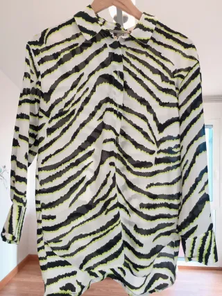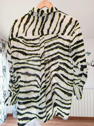 Camisa con un llamativo estampado de cebra. - Diseño de manga larga. - Cuello camisero. - Cierre de botones.