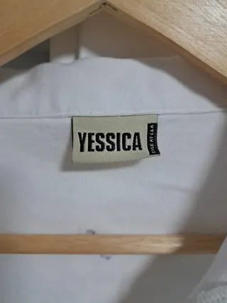 Blusa Mango Casual blanca, talla L. Tejido ligero con topos bordados, manga larga abullonada y escote en V. Estilo boho. En buen estado, cómoda y fácil de combinar. 🤍