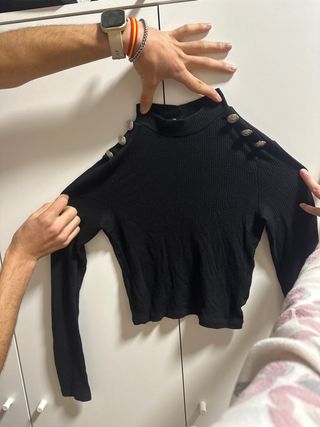 Crop top de manga larga. Talla M. Color negro. Hombro a hombro: 41 Axila a axila: 41 Largo: 39 ¡Acepto ofertas!
