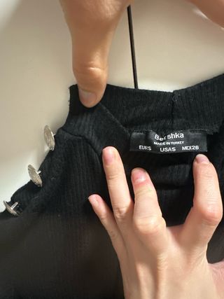 Camiseta de Bershka con manga larga y cuello alto. Presenta detalles de botones decorativos en los hombros. - Tejido acanalado. - Diseño moderno y elegante.