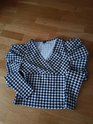 Camiseta de manga larga con un llamativo estampado de pata de gallo. - Diseño con cuello en V. - Mangas abullonadas. - Tejido cómodo y elástico.