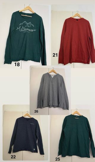 Lote Camisetas Manga Larga (XL–3XL) 🧥 PACK manga larga para frío y entretiempo Incluye 5 prendas: 18. Kiabi verde (XL) 21. Springfield roja rayas negras (3XL) 22. Easy Wear azul rayas (XL) 25. Springfield verde (3XL) 26. Springfield gris (3XL) 🧵 Cómodas, suaves y de buena marca 🧼 Sin manchas ni roturas 🔥 Mezcla de estilos: casual, sport, urbano