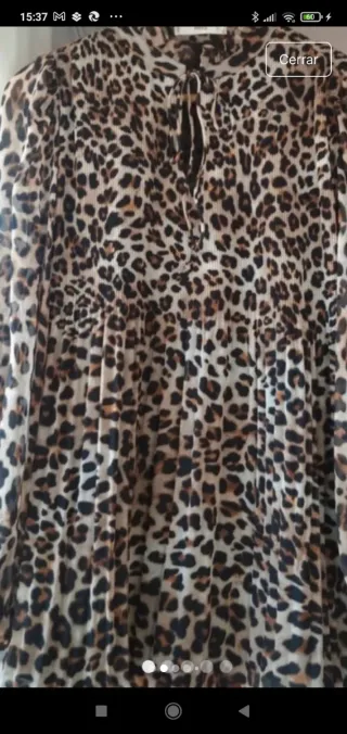 Blusón con estampado animal print de Mango. Presenta un diseño con cuello y lazada. - Mangas largas. - Tejido ligero y fluido. Mide de hombros 35 cmts y de largo 71 cm5