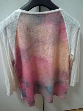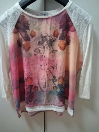 Camiseta de manga larga con un diseño vibrante y original. - Estampado floral y geométrico multicolor. - Cuello con abertura. - Fruncido lateral para un ajuste favorecedor. Solo usada 1 vez