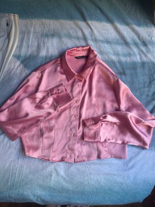 Elegante blusa de Stradivarius con un acabado satinado. ESTILO TOP - Diseño de manga larga. - Cierre de botones. - Cuello camisero.