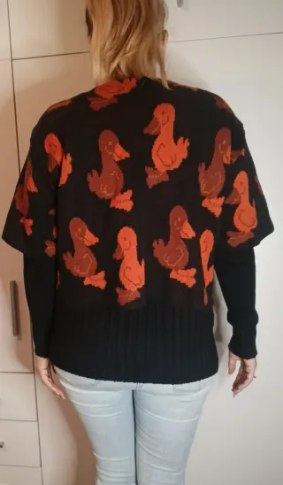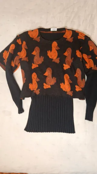 Jersey de punto con diseño 2 en 1. - Manga larga. - Estampado de patos. - Cuello redondo. Es un jersey de dos piezas unidas entre si que no se pueden separar,una camiseta y un in jersey.No lleva etiqueta por eso las medidas están en las fotos.