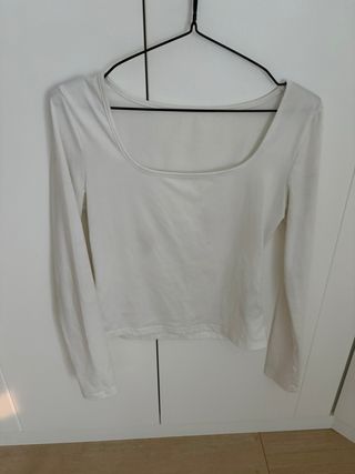Camiseta blanca manga larga escote cuadrado