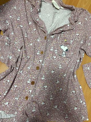 Conjunto de pijama con estampado de Snoopy y flores. - Camiseta de manga larga con botones. - Pantalón largo con cordón. - Diseño divertido y cómodo. NO RESERVO