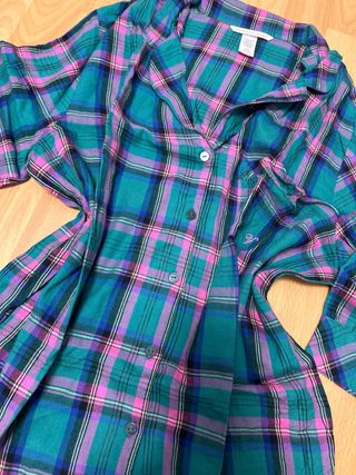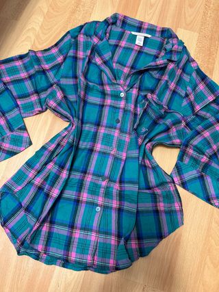 Camisa de cuadros de Victoria's Secret. - Diseño a cuadros en tonos verdes, rosas y morados. - Cuello camisero y cierre de botones. - Manga larga. NO RESERVO