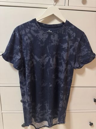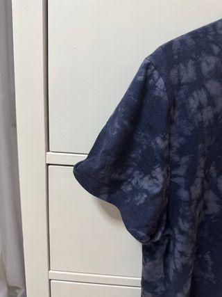 Camiseta con estampado tye-dye en tonos azules y grises. - Diseño con manchas. - Cuello redondo. - Manga corta. - 76 cm largo x 50 cm ancho (axila a axila).