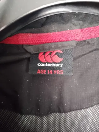 Chaqueta deportiva Canterbury con detalles en rojo. - Logo de Canterbury en el pecho. - Escudo de Inglaterra y logo de O2 en la manga. - Cierre de cremallera frontal. - Bolsillos laterales con cremallera.